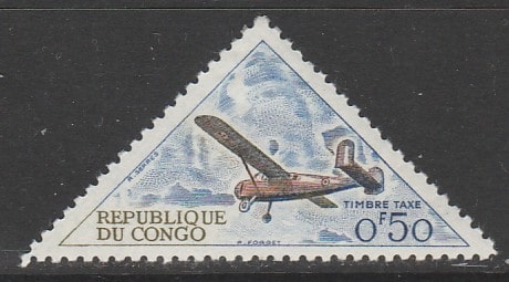 Конго (Браззавиль) 1961 год. Средства доставки почты: аэроплан "Бруссар", 1 доплатная марка из серии (наклейка)(1 из 12)