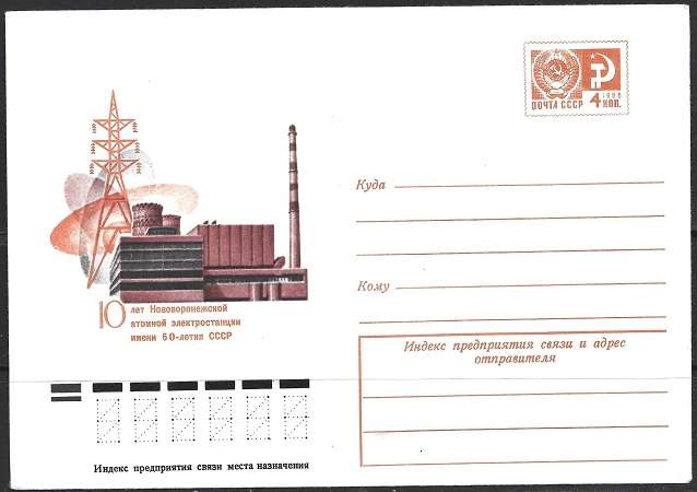 Конверт 10 лет Нововоронежской атомной электростанции имени 50-летия СССР. 12.08.1974 год.