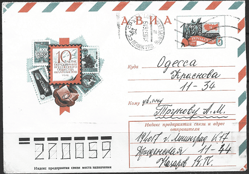 Конверт 10 летие образования Всесоюзного общества филателистов. 23.02.1976 год. Прошёл почту