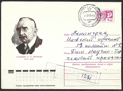 Конверт Академик В.П. Воробьев. 07.05.1976 год. Прошёл почту.