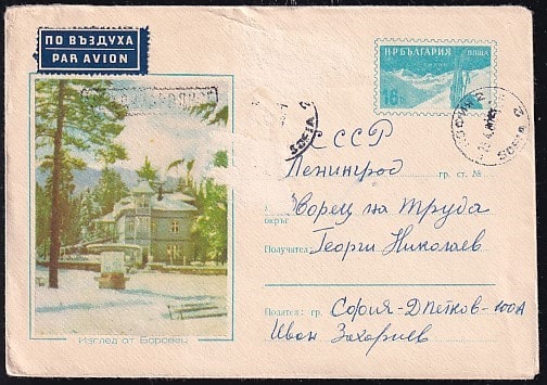 Конверт Болгарии Боровец. Выпуск 1960 год, прошел почту