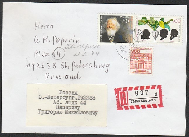 Конверт ФРГ. Историограф Леопольд фон Ранке, п/почту в 1996 году.