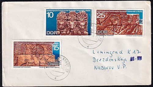 Конверт ГДР Берлинский университет им. Гумбольдта, 1977 год, прошел почту