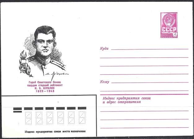 Конверт И.Э. Шуклин. Герой Советского Союза гвардии старший лейтенант. 13.08.1979 год.
