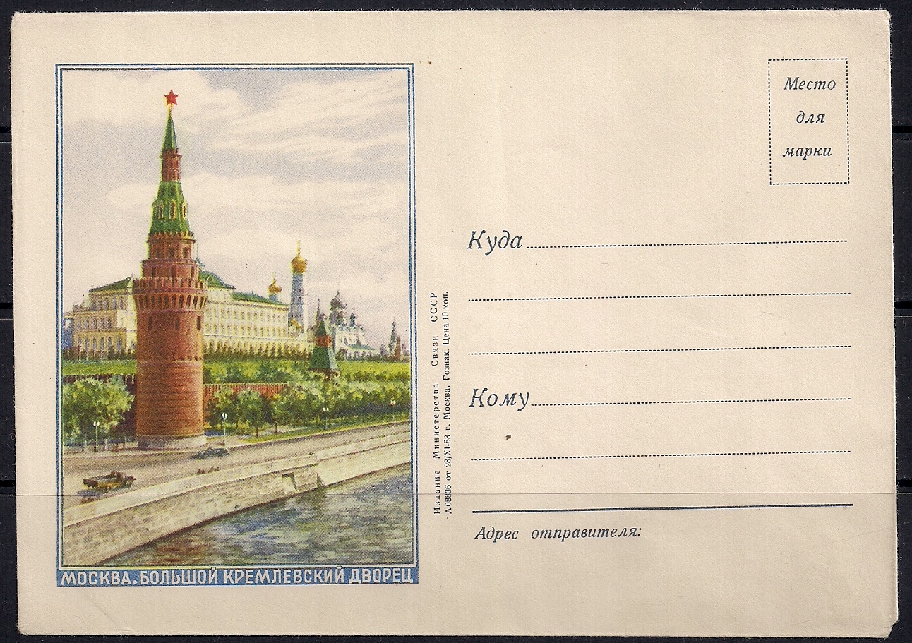 Конверт Москва. Большой Кремлевский дворец. Выпуск 28.11.1953 год