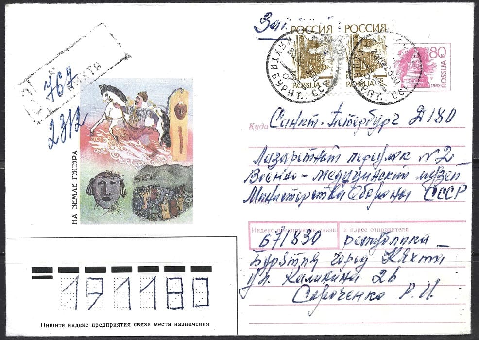 Конверт На Земле Гэсэра. 05.06.1992 год. Прошел почту.