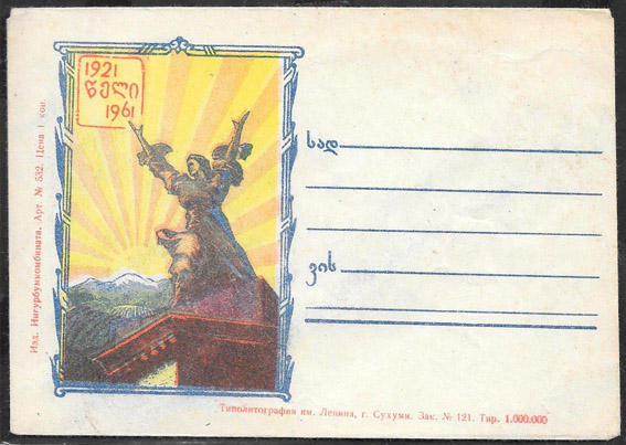 Конверт. Памятник. Типолитография им. Ленина, г. Сухуми. 1961 год