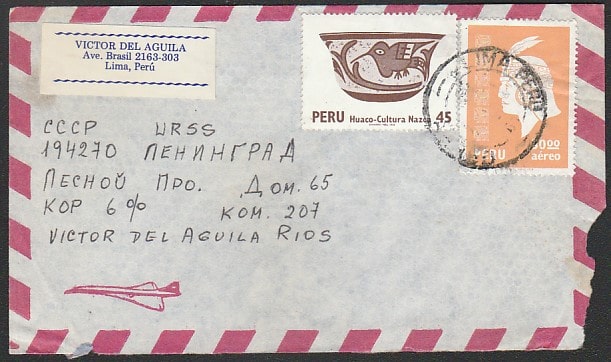 Конверт Перу. Голова инка, 1978 год, п/почту.