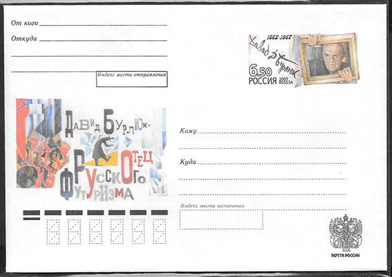 Конверт с ОМ - 125 лет со дня рождения поэта, художника Д.Д. Бурлюка. 2007 год