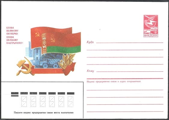 Конверт Слава Великому Октябрю! Белоруссия. Жилстроительство. 27.04.1987 год.