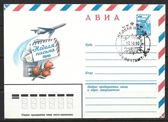 Конверт со СГ Неделя письма, Рига 12.10.1980 год