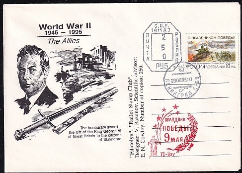Конверт со СГ Праздник Победы 9 мая!" (союзники), 9.05.1995 год, Ленинград