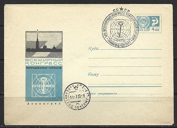 Конверт со СГ VII Всемирный конгресс породненных городов, 7-10.07.1970 год