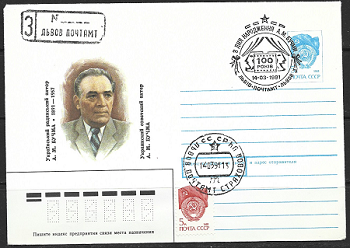 Конверт со спецгашением 100 лет со дня рождения украинского советского актера А.М.Бучма 14.03.1991 год