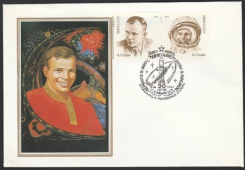 Конверт со спецгашением. 30 лет первому в мире полёту человека в космос, 12.04.1991 год, Калининград-9, Московской области (+1Ю)