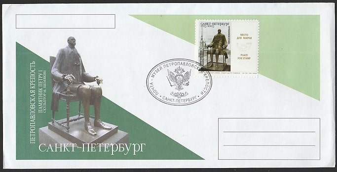 Конверт со спецгашением. Петропавловская крепость. Памятник Петру I, 2003 год