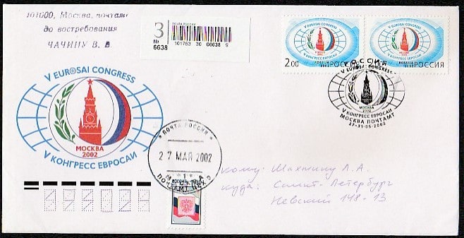 Конверт со спецгашением. V Конгресс Европейской организации высших органов финансового контроля, 27-31.05.2002 год, Москва, почтамт, п/почту.