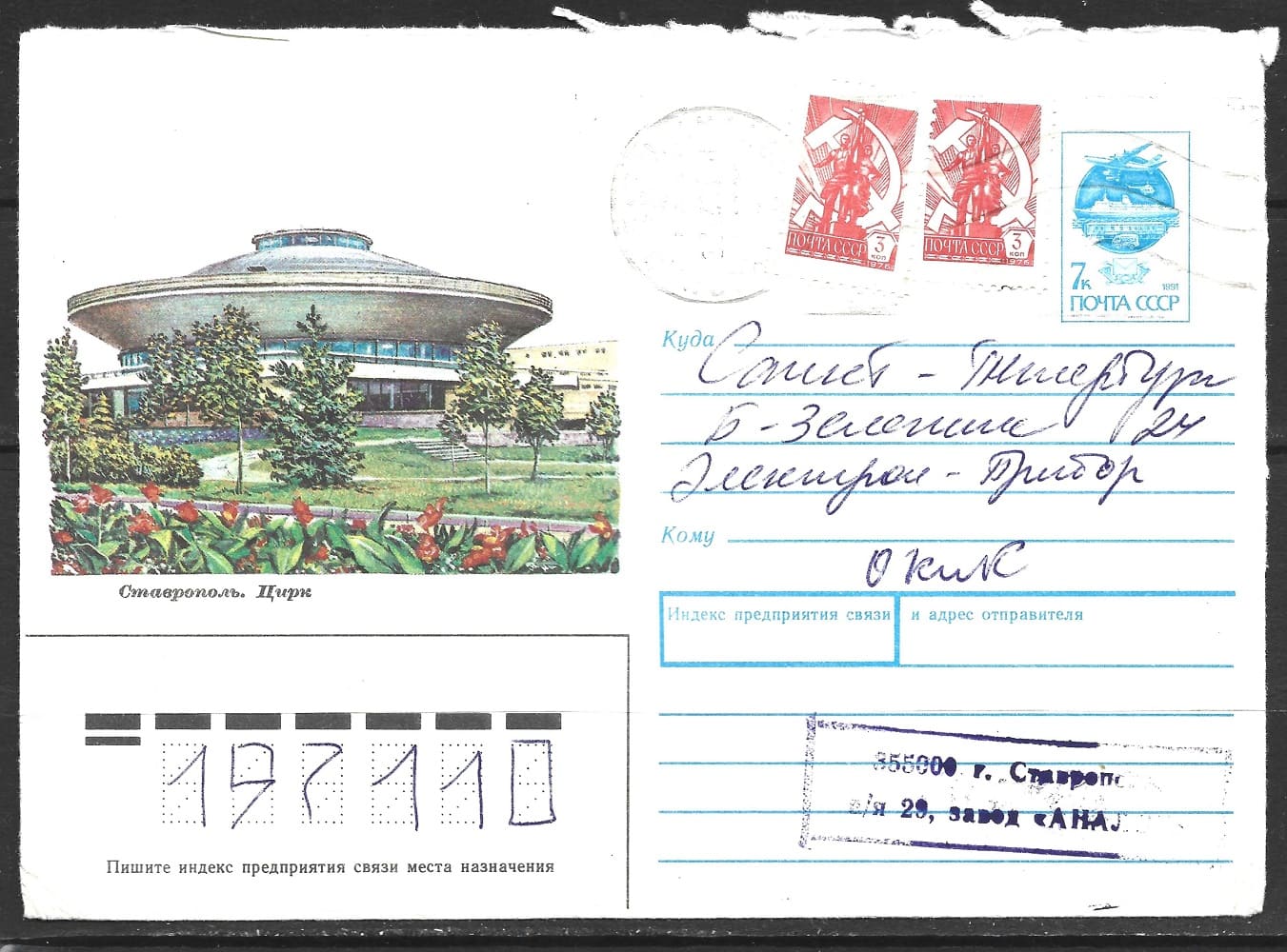 Конверт Ставрополь (4). Цирк. 12.04.1991 год. Прошел почту.