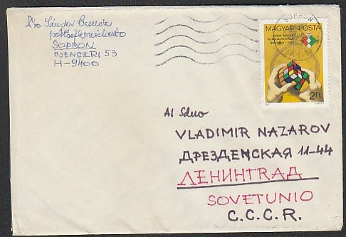 Конверт Венгрии. Кубик Рубика, п/почту в 1982 году.