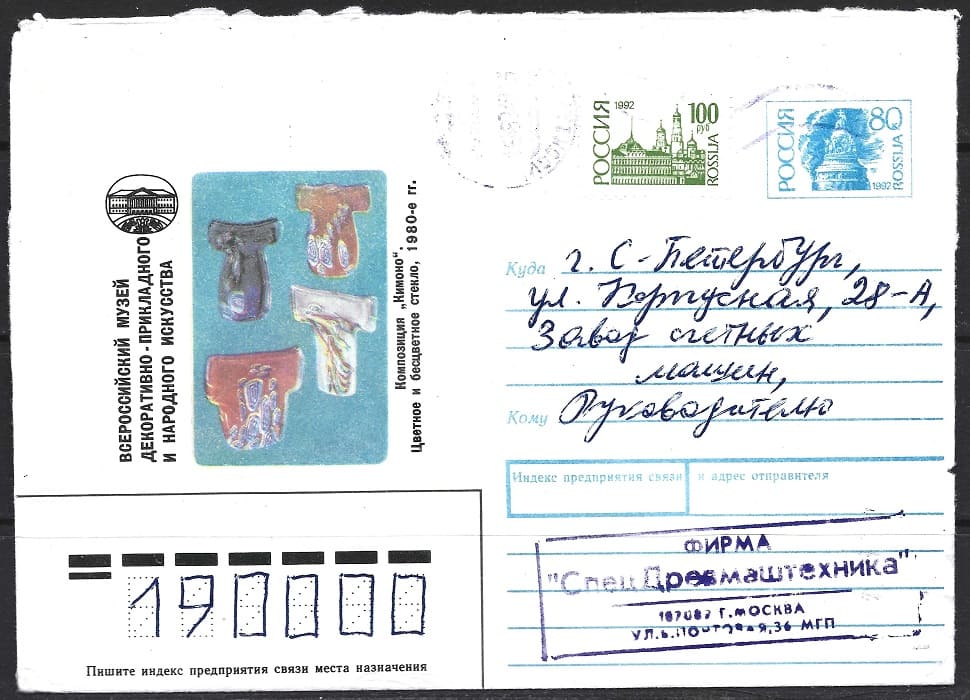 Конверт Всероссийский музей декоративно-прикладного и народного искусства. Кимоно (2) 27.04.1992 год. Прошел почту