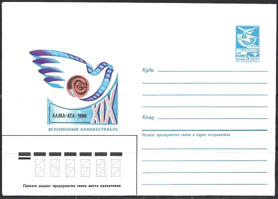 Конверт XIX Всесоюзный кинофестиваль 1986 Алма-Ата. 05.03.1986 год