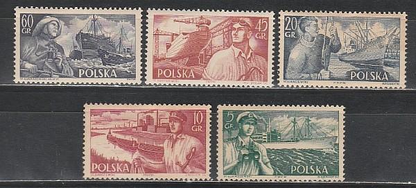 Корабли, Моряки, Польша 1956, 5 марок