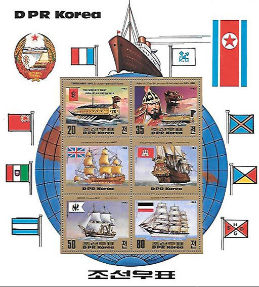 КНДР, Корея 1983 г. Боевые корабли разных стран, 3 блока и 3 малых листа