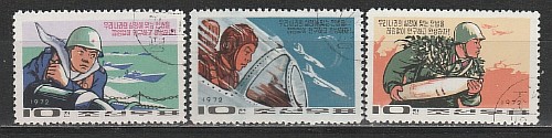 Корейские Солдаты, КНДР 1972 год, 3 гашёные марки