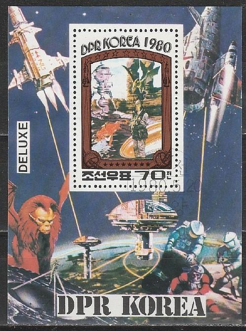 Космическая Фантастика, КНДР 1980 год, гашёный блок