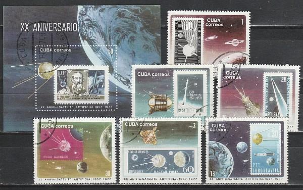 Космос, Куба 1977 год, 6 гашёных марок + блок
