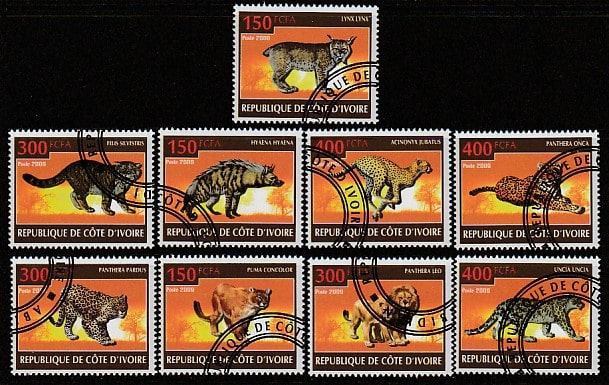 Кот дИвуар 2009 год. Дикие кошки, 9 марок (гашёные)