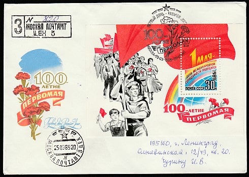 КПД. 100 лет Первомаю, 28.03.1989 год, Москва, почтамт, заказное, прошёл почту