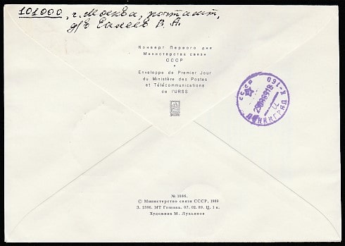 КПД. 70 лет советскому цирку, 22.08.1989 год, Москва, почтамт, заказное, прошёл почту