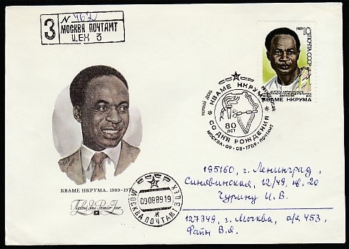 КПД. 80 лет со дня рождения Кваме Нкруме, 09.08.1989 год, Москва, почтамт, заказное, прошёл почту