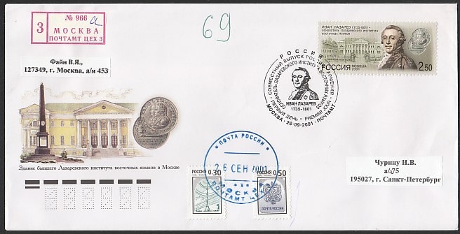 КПД. Иван Лазарев - основатель института восточных языков, 26.09.2001 год, Москва, почтамт, заказное, прошёл почту