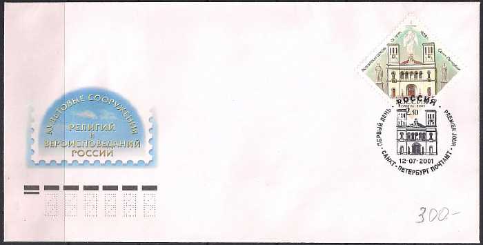 КПД Культовые сооружения религий и вероисповеданий России с маркой "Лютеранская церковь св. Петра", 12.07.2001 год, Санкт-Петербург почтамт