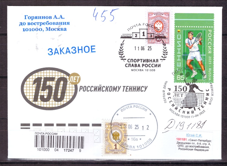 КПД прошел почту. Российский теннис - 150 лет, Москва 11.06.2025 год