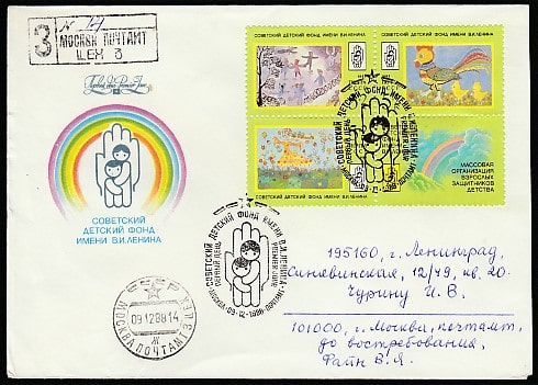 КПД. Рисунки детей. Советский детский фонд, 09.12.1988 год, Москва, почтамт, заказное, прошёл почту