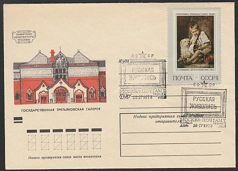 КПД. Русская живопись. Картина А.Г. Венецианова "Вот-те и батькин обед!", 18.04.1973 год, Москва, почтамт