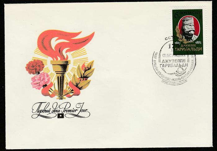 КПД со спецгашением от 25.08.82 г. 100 лет со дня рождения Д. Гарибальди