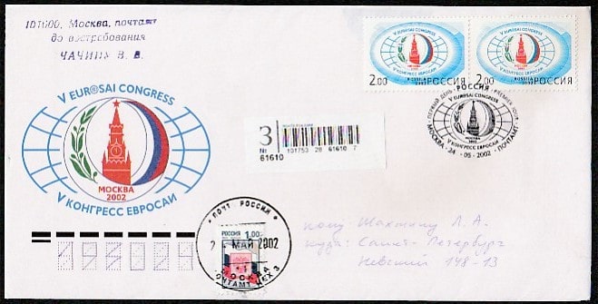 КПД. V Конгресс Европейской организации высших органов финансового контроля, 24.05.2002 год, Москва, почтамт, п/почту.