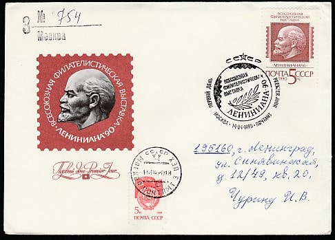КПД. Всесоюзная филвыставка "Лениниана-90", 14.04.1990 год, Москва, почтамт, заказное, прошёл почту