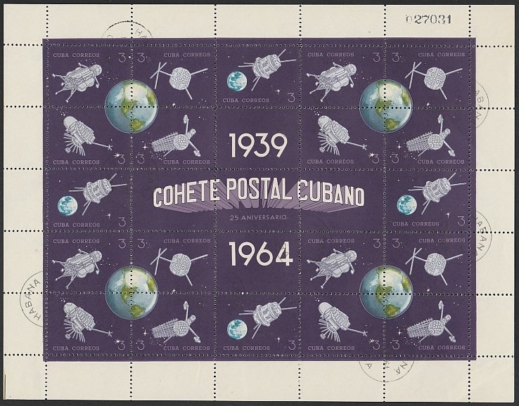 Куба 1964 год. Земля и космические аппараты (ном. 3), лист (гашёный)