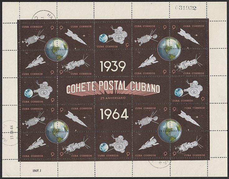 Куба 1964 год. Земля и космические аппараты (ном. 9), лист (гашёный)
