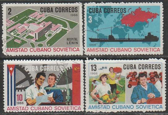 Куба 1966 год. Кубинско - советская дружба, 4 гашёные марки