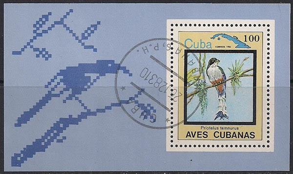 Куба 1983 год. Птицы. 1 гашёный блок