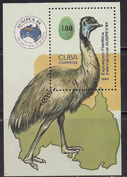 Куба 1984 год. Филвыставка "AUSPEX-84". Страус. 1 блок