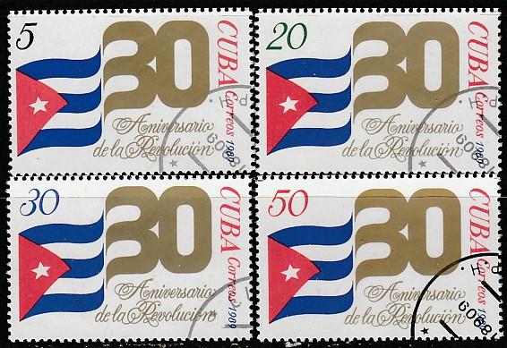 Куба 1989 год. 30 лет Кубинской Революции. 4 гашёные марки