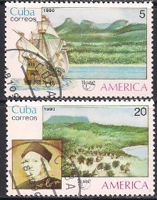 Куба 1990 год. 500 лет открытию Америки Х. Колумбом. 2 гашеные марки