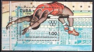 Куба 1990 год. Летние Олимпийские игры 1992 года в Барселоне. Блок (наклейка)